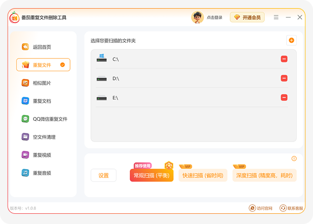 添加扫描目录,开始扫描所选文件目录的重复文件